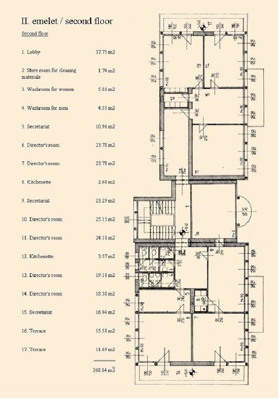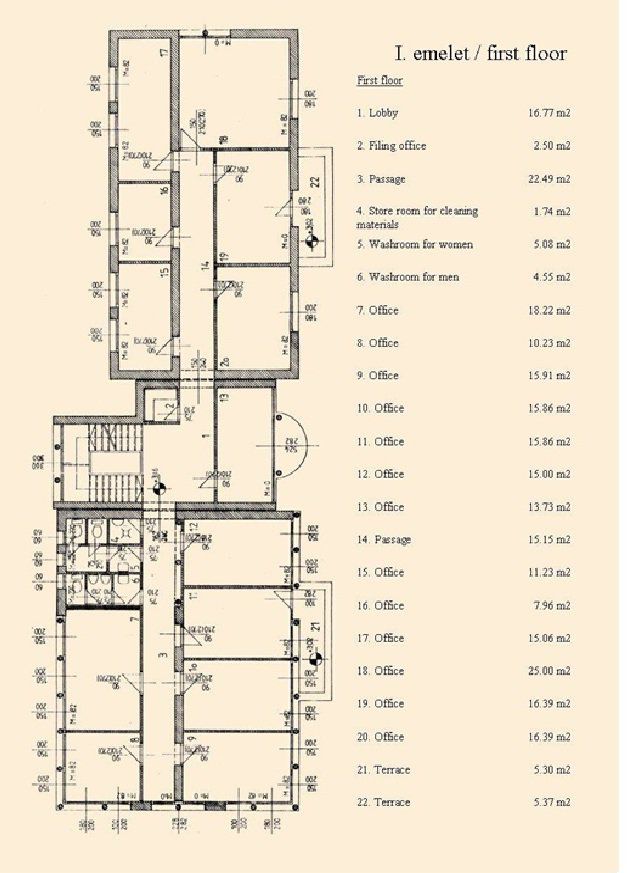 A telek területe 1500 nm. Irodaház területe 1010 nm (4 szint)